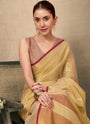 Fabric : Pure Tissue Silk With Contrast Red Weave Border And Pallu