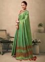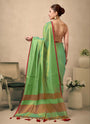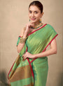 Fabric : Pure Tissue Silk With Contrast Red Weave Border And Pallu