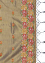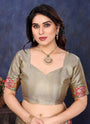 Blouse Fabric : Tissue Silk With All Over Zari Weave With Floral Weave Border.