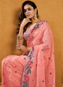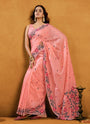 Pure Peach Cotton jamdani floral weaving